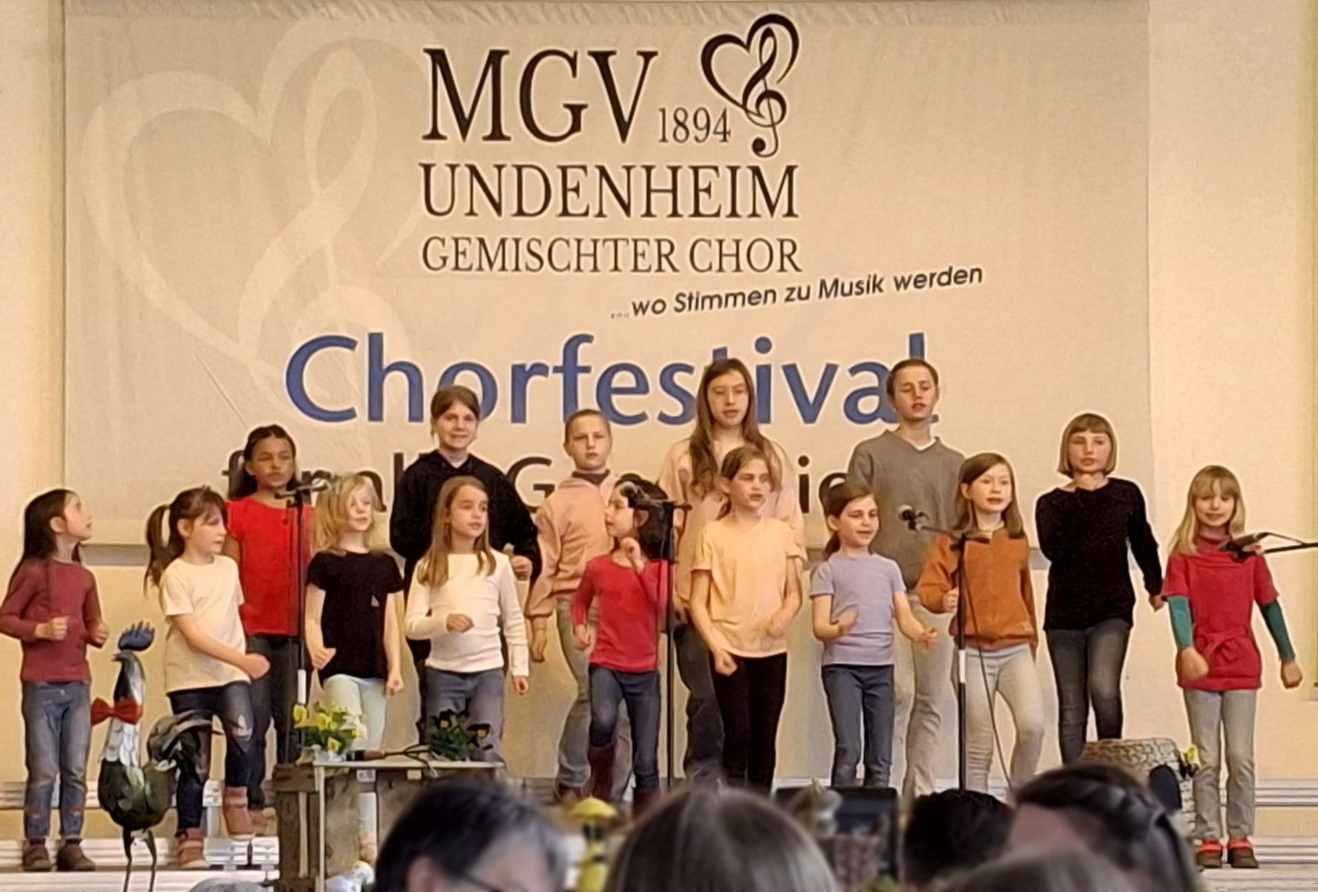 Vom 21. bis 23.03.2025 veranstaltete der MGV 1894 Undenheim sein 17. Chorfestival. Am Sonntag Nachmittag traten 9 Kinder- und Jugendchöre in der Goldbachhalle auf.