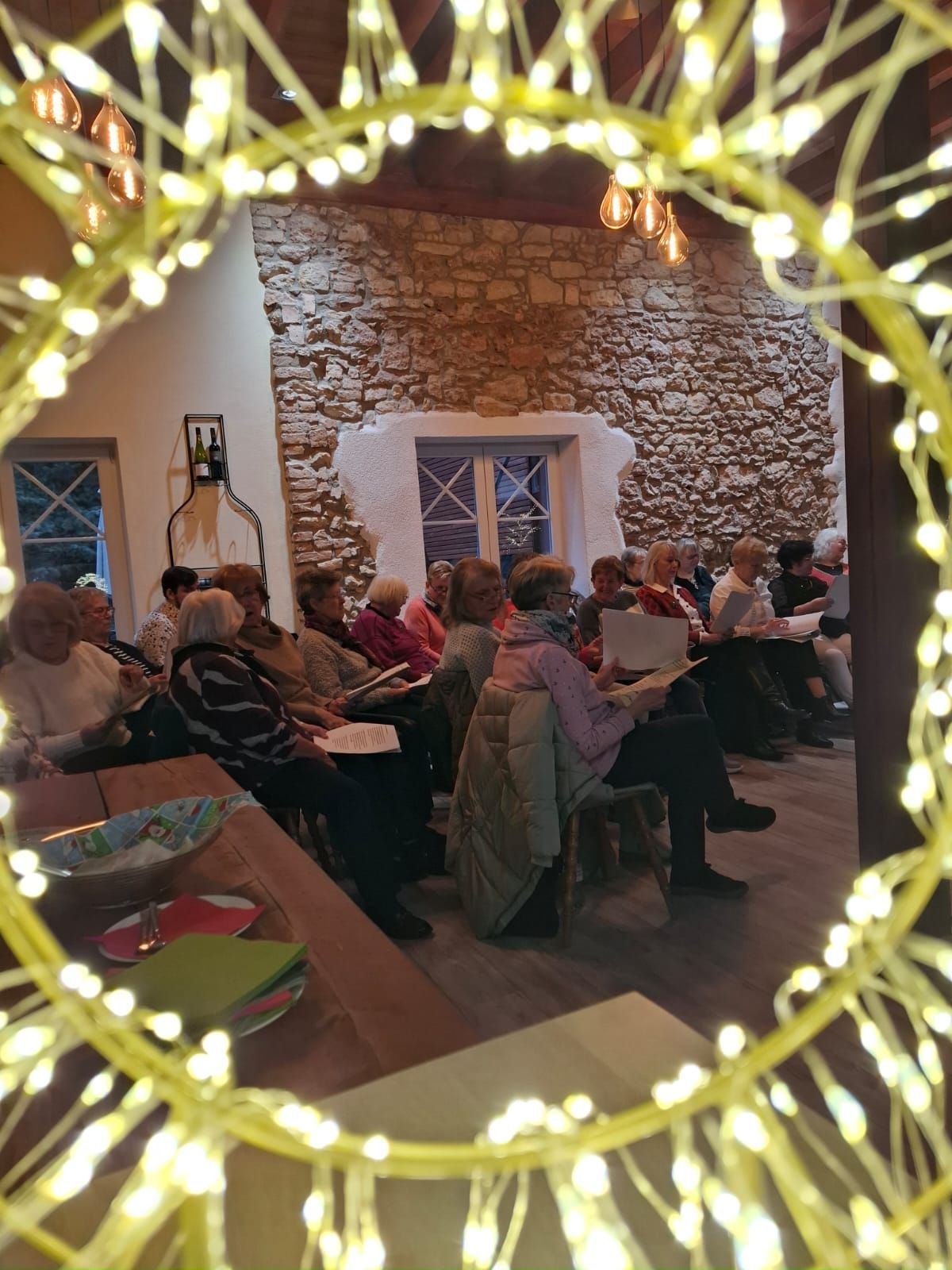 bei Kaminfeuer und Kerzenschein, Kaffee und selbstgebackenen Kuchen und Plätzchen aus dem Reihen der Sänger*Innen.